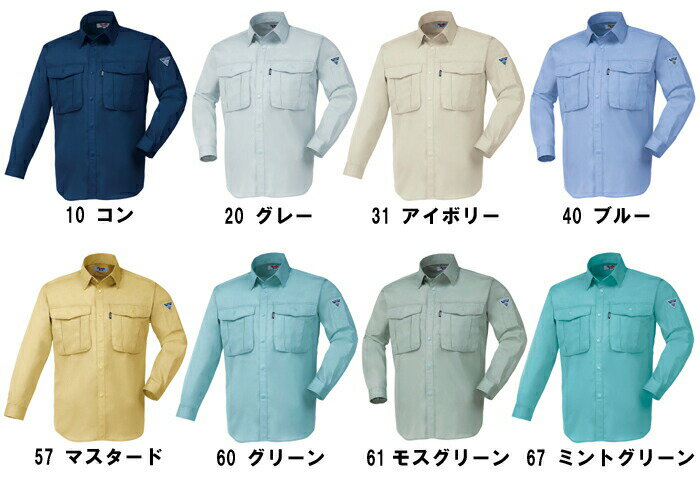 スペック メーカー ジーベック(XEBEC) 品番/シリーズ 1293/1290シリーズ シーズン 春夏物 ※このシリーズの秋冬用商品はコチラ ※このシリーズの防寒服はコチラ 商品名 長袖シャツ(年間・春夏対応) 素材 T/Cバーバリー (ポリエステル65%、綿35%) カラー 10 コン 20 グレー 31 アイボリー 40 ブルー 57 マスタード 60 グリーン 61 モスグリーン 67 ミントグリーン サイズ S〜5L ※3L以降は割り高になります。