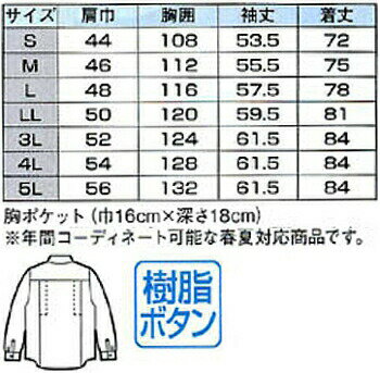 >> S〜LLは コチラ >> 3Lは コチラ >> 4L・5Lは コチラ 機能 胸ポケット(巾16cm×深さ18cm) 商品特性 プリーツロン、帯電防止、抗菌・防臭、エアアスリート、年間対応 加工 ※ご要望の加工は下のバナーをクリックしてお求めくださいませ。