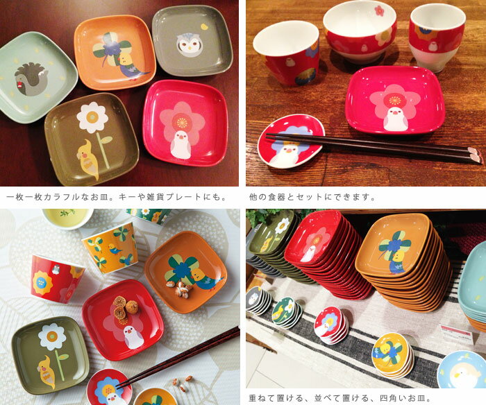 【KOTORITACHI】角鳥皿 ◆小鳥グッズ 小鳥雑貨 キッチン 食器 和食器 四角 文鳥 セキセイインコ オカメインコ ふくろう フクロウ 水鳥