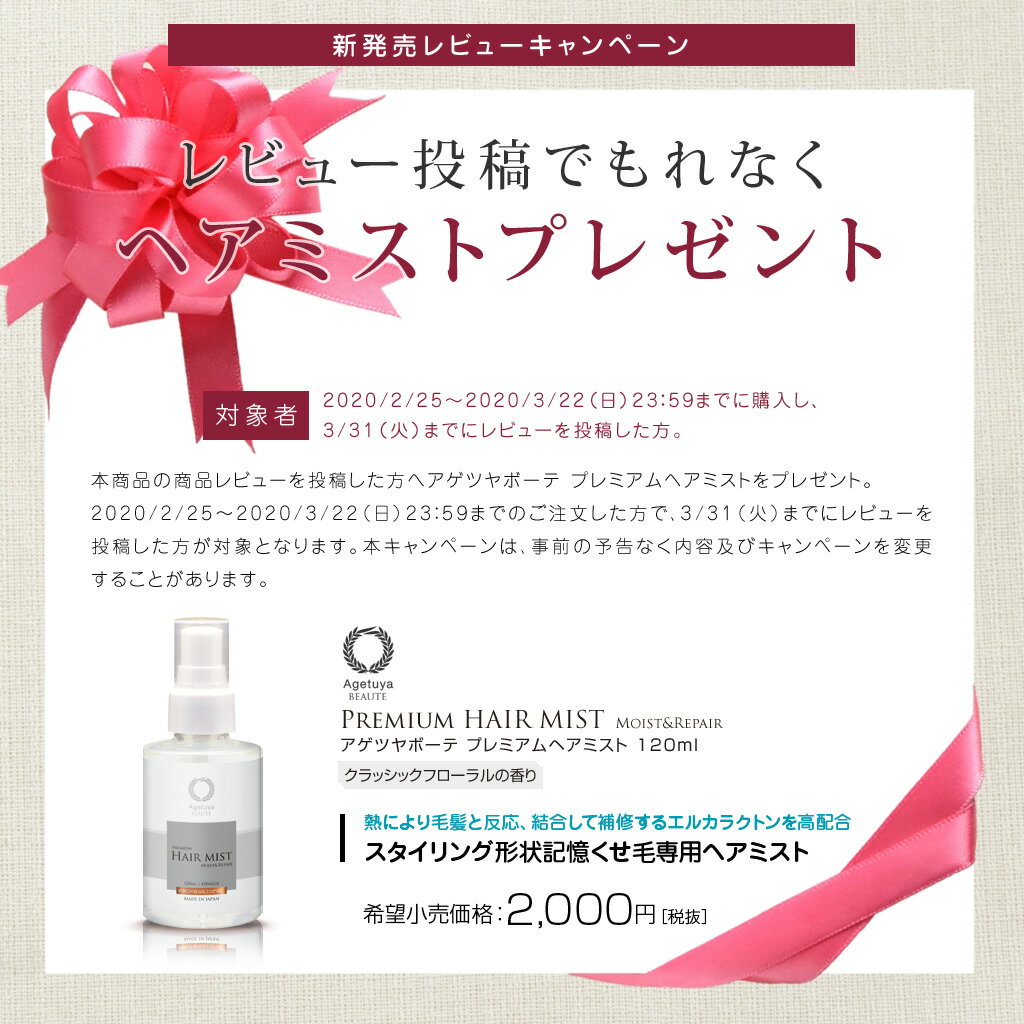 製品名 アゲツヤボーテ プレミアムシャンプーアゲツヤボーテ プレミアムトリートメント 内容量 シャンプー:300mL | アゲツヤボーテ プレミアムトリートメント:300g 成分 ■シャンプー:水、コカミドプロピルベタイン、ココイルメチルタウリンタウリンNa、ラウレス-6カルボン酸Na、コカミドメチルMEA、ラウロイルメチルアラニンTEA、イソステアロイル加水分解ケラチン(羊毛)、ステアルジモニウムヒドロキシプロピル加水分解ケラチン(羊毛)、ルイボスエキス、カキタンニン、グリセリン、グリシン、アルギニン、アラニン、ココイルグルタミン酸2Na、ヒドロキシアルキル(C12-14)ヒドロキシエチルサルコシン、ラウロイルメチルイセチオン酸Na、ジオレイン酸PEG-120メチルグルコース、ポリクオタニウム-10、ココイルグルタミン酸Na、トレハロース、BG、ペンテト酸5Na、イソノナン酸イソノニル、ラウリン酸スクロース、クエン酸、クエン酸Na、塩化Na、コカミドDEA、安息香酸Na、硫酸亜鉛、酸化亜鉛、エタノール、フェノキシエタノール、EDTA-2Na、オレフィン(C14-16)スルホン酸Na、トコフェロール、メチルパラベン、香料 ■トリートメント:水、セタノール、ベヘントリモニウムクロリド、ジメチコン、ステアリルアルコール、アモジメチコン、ドデカン、オレス-2、イソステアロイル加水分解ケラチン(羊毛)、ステアルジモニウムヒドロキシプロピル加水分解ケラチン(羊毛)、ハチミツ、オリーブ果実油、カラフトコンブエキス、ワカメエキス、ガゴメエキス、γ-ドコサラクトン、セラミドNG、ダイズステロール、コレステロール、ラウロイルグルタミン酸ジ(フィトステリル/オク チルドデシル)、クオタニウム-18、クオタニウム-33、セテス-20、BG、PG、イソノナン酸イソノニル、プロパンジオール、ジココジモニウムクロリド、ステアルトリモニウムクロリド、乳酸、オレイルアルコール、イソプ ロパノール、ポリオレイン酸スクロース、シクロペンタシロキサン、エタノール、トコフェロール、フェノキシエタノール、香料、ジステアリルジモニウムクロリド、硫酸亜鉛、ピリドキシンHCI ご使用上の注意 ・お肌に合わない時、次のような場合には、使用を中止してください。